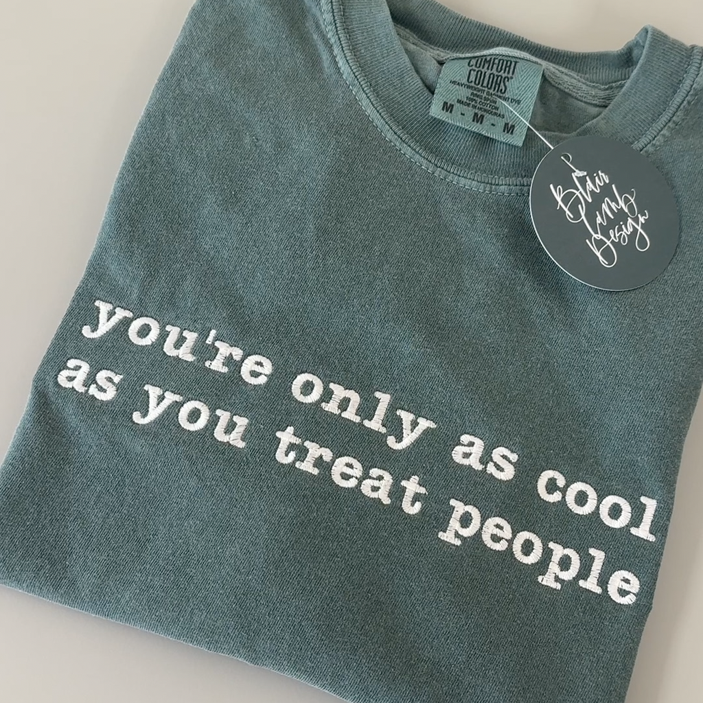 You're Only As Cool As You Treat People Embroidered on Blue Spruce Tee PREORDER